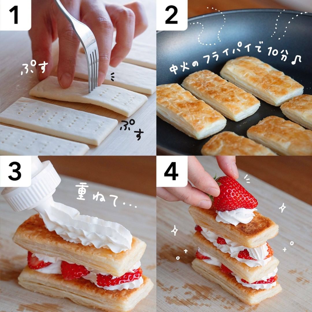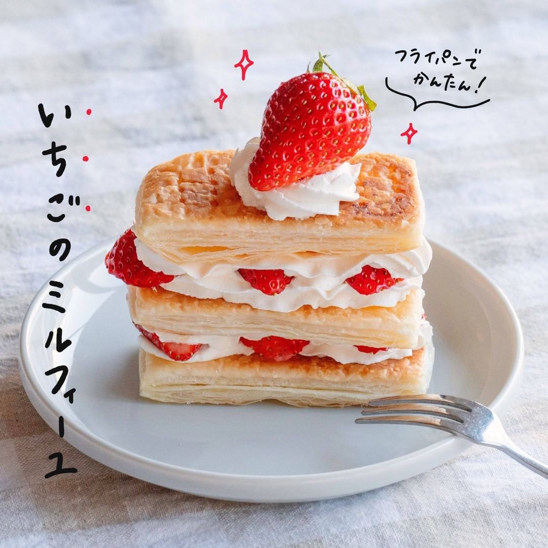 簡単おしゃれスイーツ🍓 『フライパンで簡単 いちごのミルフィーユ』