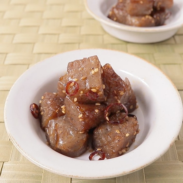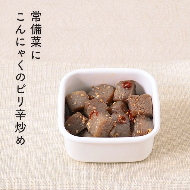 ごはんにもお酒にもぴったりの常備おかず、ピリ辛こんにゃくのご紹介です。格子状の隠し包丁を入れてから味付けをすることで、鷹の爪のピリっとした辛さと、しょうゆの味付けがしっかりとこんにゃくに染みておいしくいただけますよ。ごま油といりごまの風味もとてもよいアクセントになります。