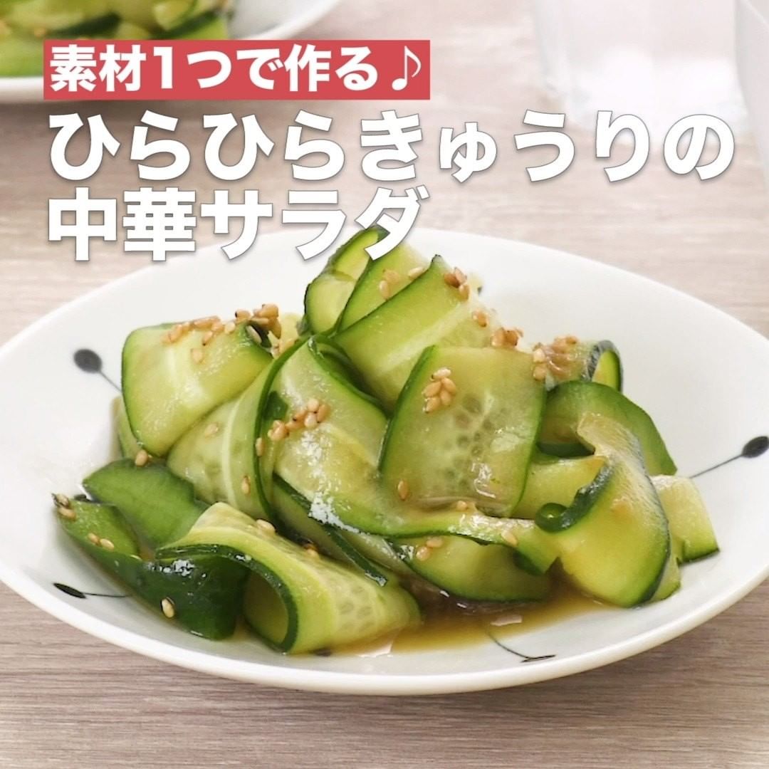 ①<素材1つで作る♪ひらひらきゅうりの中華サラダ>