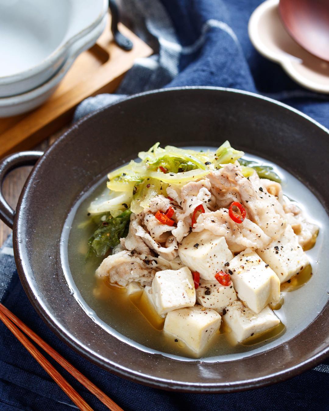 #簡単 #簡単レシピ #レシピ #節約 #時短 #時短レシピ #作り置き #お弁当 #food #recipe #cooking #料理好きな人と繋がりたい #器好き #器 #写真好き #楽うま #おかず #自分時間 #自分磨き #自分らしく #豚肉 #白菜 #豆腐 #もつ鍋風 #うま塩