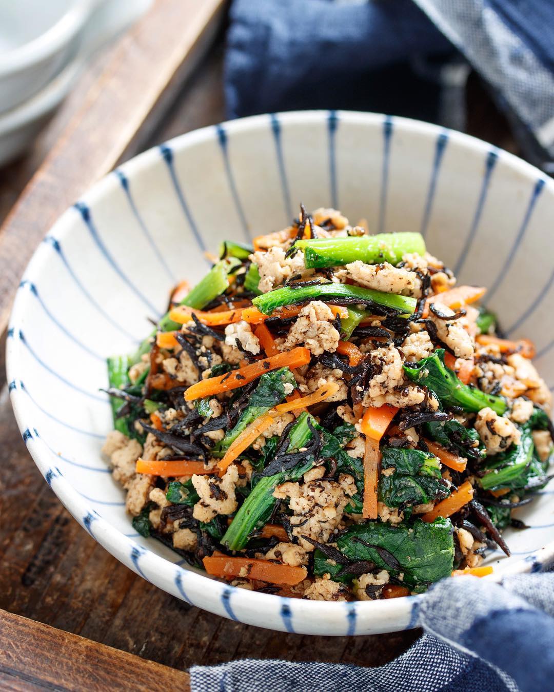 #簡単 #簡単レシピ #レシピ #節約 #時短 #時短レシピ #作り置き #お弁当 #food #recipe #cooking #料理好きな人と繋がりたい #器好き #器 #写真好き #楽うま #おかず #自分時間 #自分磨き #自分らしく #ひじき #小松菜 #そぼろ #にんじん