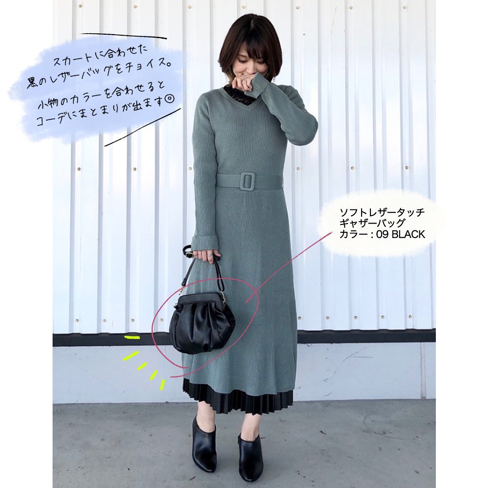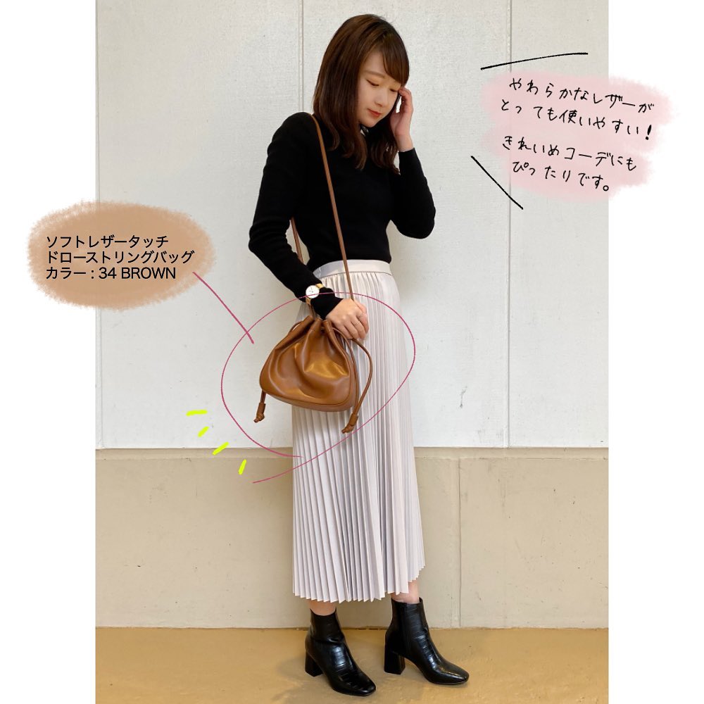 #スクエアネックポーチ #ソフトレザータッチギャザーバッグ #ソフトレザータッチドローストリングバッグ #レザータッチエンボスバッグ #レザータッチミニトートバッグ #お出かけコーデ