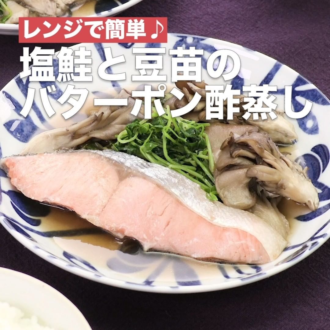 ⑥<レンジで簡単♪塩鮭と豆苗のバターポン酢蒸し>