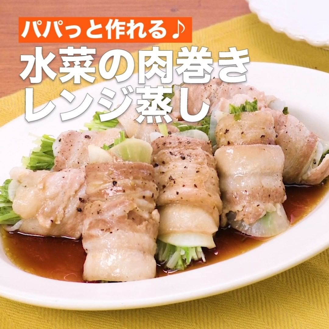 ①<パパっと作れる♪水菜の肉巻きレンジ蒸し>