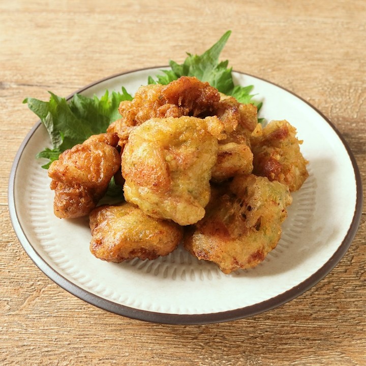 鶏もも肉は切る大きさによって揚げる時間がかわりますので、しっかりと火が通るまで加熱してください。