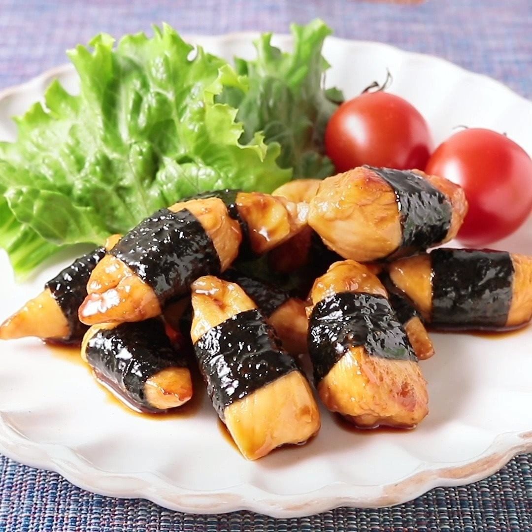 ①『焼き鳥のたれで作る ササミの磯辺巻き』 .