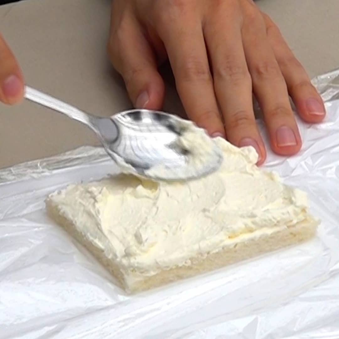 ⑦冷蔵庫で20分冷やして完成。対角線上に上手に切ると断面がお花のように!