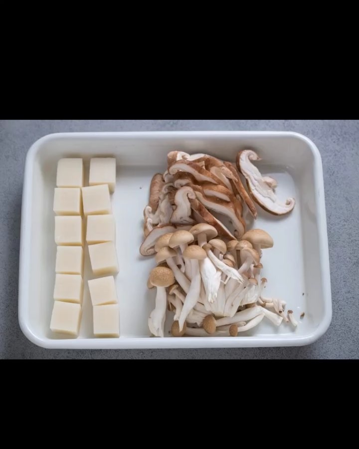 ②鍋に【a】・なめこ・しめじ・しいたけを入れて中火にかける。沸騰してとろみがついたら、大根おろしを加えて火を止める。(味が薄くなってしまった場合は、めんつゆを足して!)