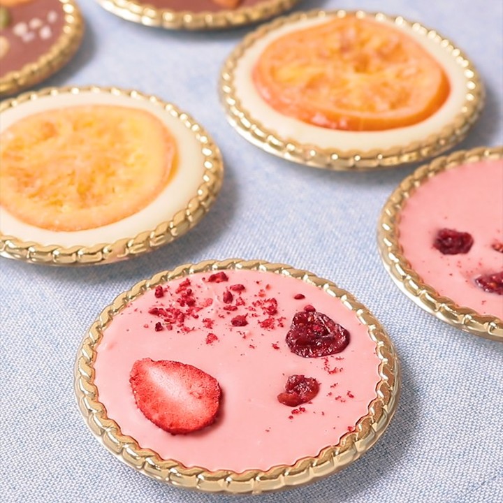 ストロベリーチョコレートはお好みの種類のものでも美味しくお作りいただけます。テンパリングすると綺麗に仕上がりますよ。今回は直径7cmのケーキトレーを使用しました。