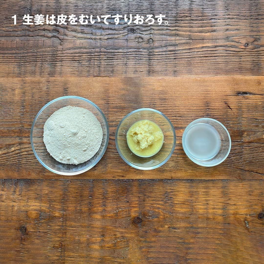 1.生姜は皮をむいてすりおろす。