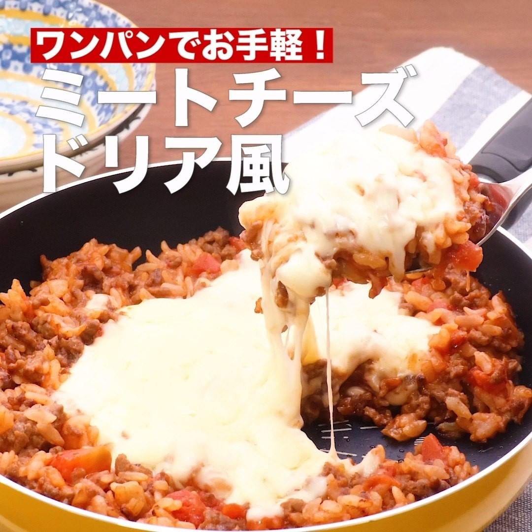 ⑤<ワンパンでお手軽!ミートチーズドリア風>