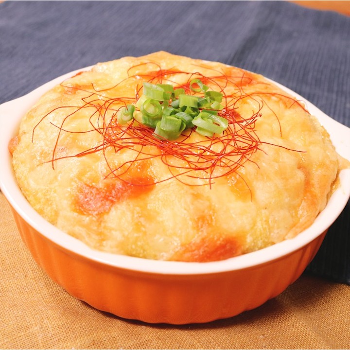 混ぜて焼くだけの、簡単レシピです。焼けた表面はこんがり香ばしく、中はふわふわなので、いろいろな食感を楽しむことができます。和食にもぴったりなこのグラタン、是非いつものおかずやおつまみに追加してみてください。