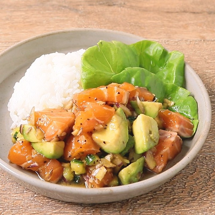 今晩のお食事に、スパイシーなサーモンのポキ丼はいかがでしょうか。旨味たっぷりのサーモンと濃厚なアボカドを粗挽き黒こしょうが効いたスパイシーなタレで和え、さっぱりとした酢飯にのせました。手軽に作れるので、ぜひお試しくださいね。