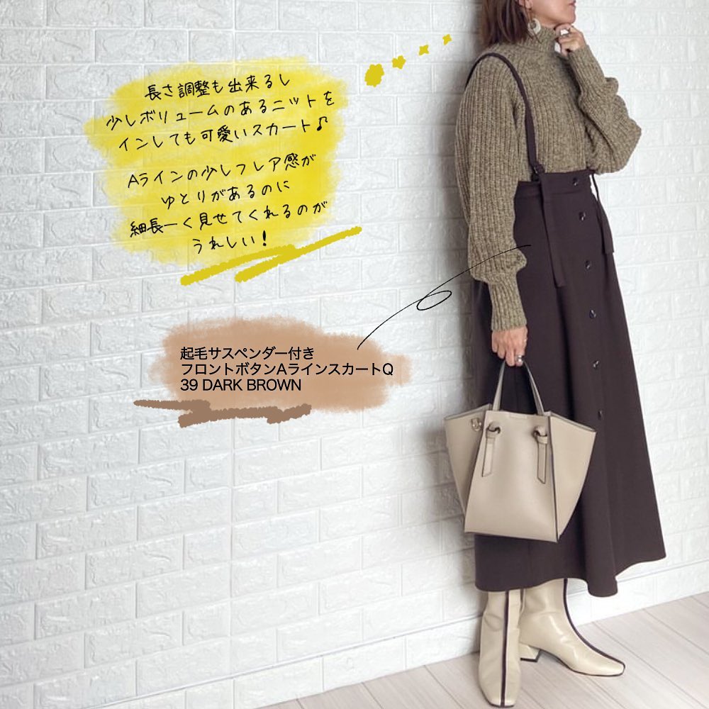 ☑︎起毛サスペンダー付きフロントボタンAラインスカートQ