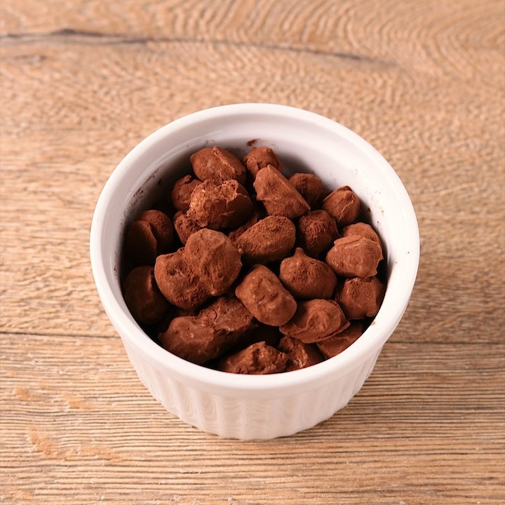 8. チョコレートが固まったら、手でほぐしボウルに入れます。ココアパウダーを入れ、全体に馴染んだら完成です。