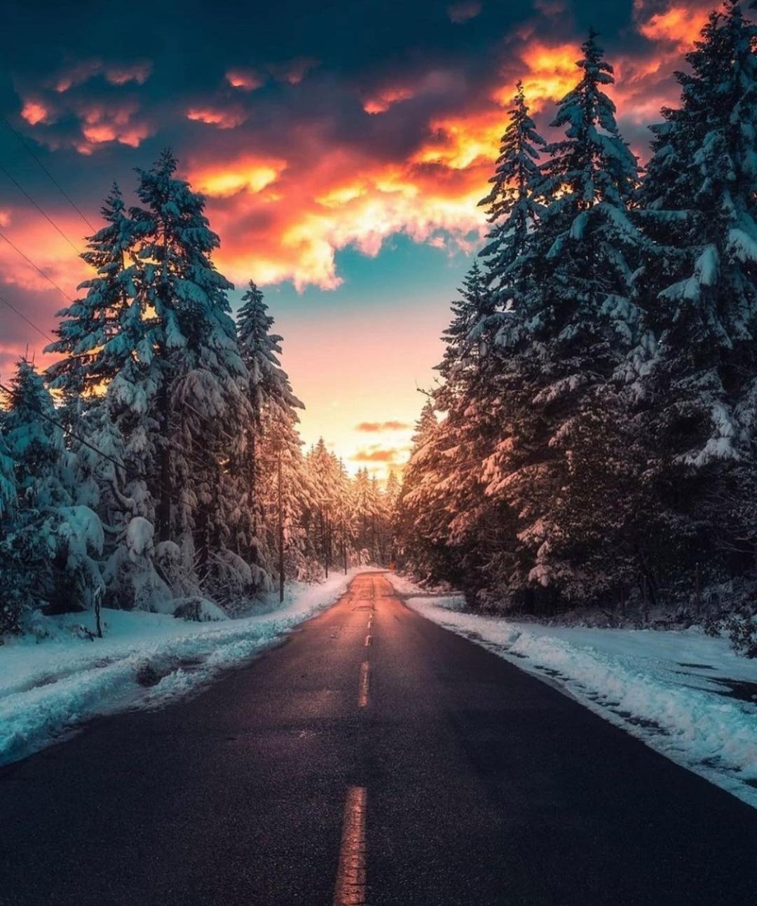 #sunset #winter #snow #sky #road