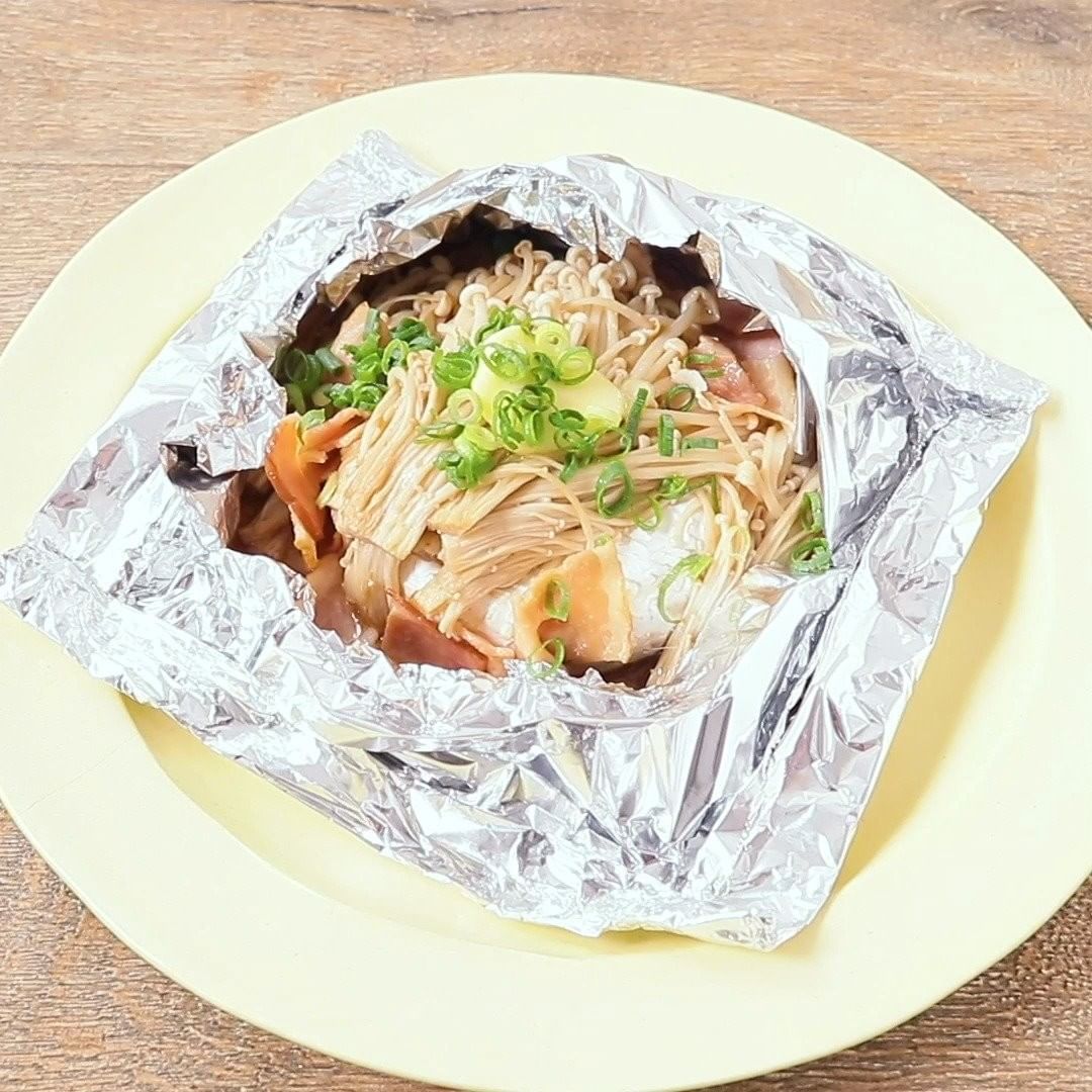 『丸ごとカマンベールとえのきベーコンのホイル焼き』