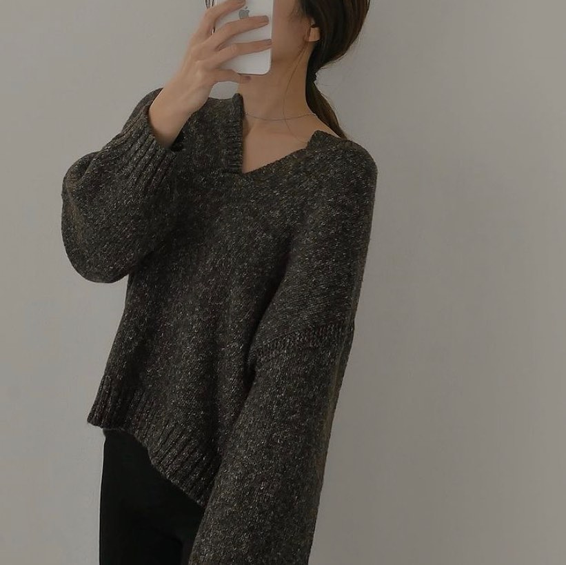 首元がスッキリ見える、キーネックセーター✨抜け感のある着こなし方が素敵ですね🥰シンプルで、いちまいで様になるから👍デイリーにもお出かけにもぴったりです👌暖かなメランジセーター🙌是非、チェックしてみてくださいね💁♀️💕