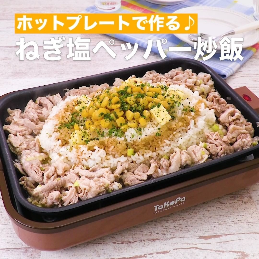 ①<ホットプレートで作る♪ねぎ塩ペッパー炒飯>