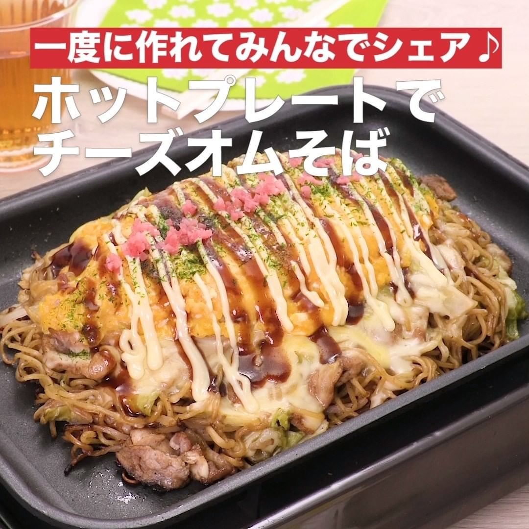 ②<一度に作れてみんなでシェア♪ホットプレートでチーズオムそば>