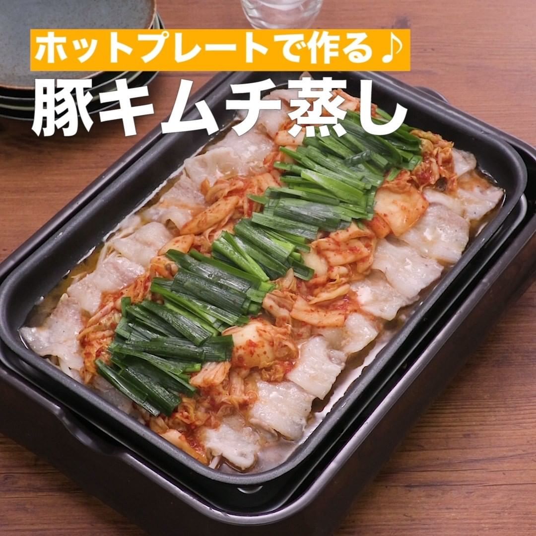 ④<ホットプレートで作る♪豚キムチ蒸し>