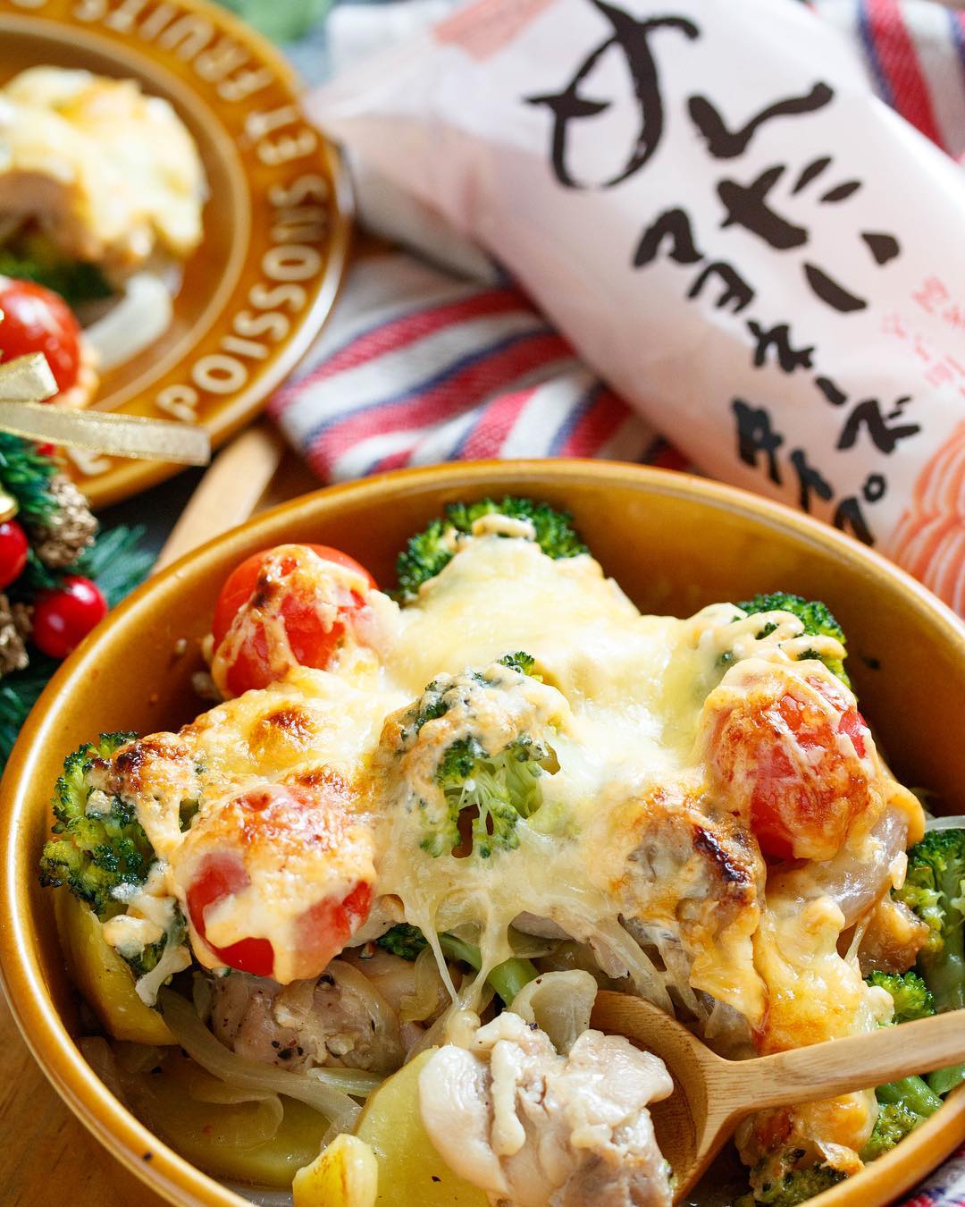 【 #チキンと野菜のめんマヨチーズ焼き 】#トースター #クリスマス #おもてなし