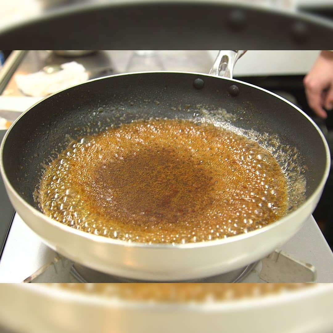 ②香ばしいにおいがしてきたら火を止め、酢(大さじ1)を加え混ぜ合わせて完成!