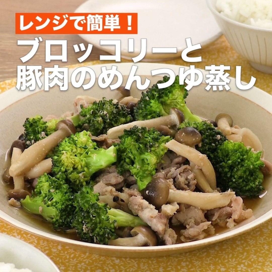 ③<レンジで簡単!ブロッコリーと豚肉のめんつゆ蒸し>