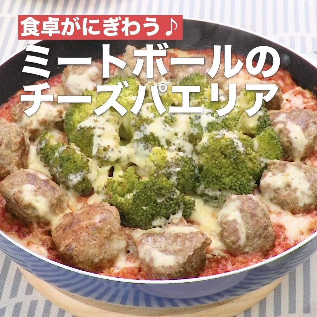 ⑧<食卓がにぎわう♪ミートボールのチーズパエリア>