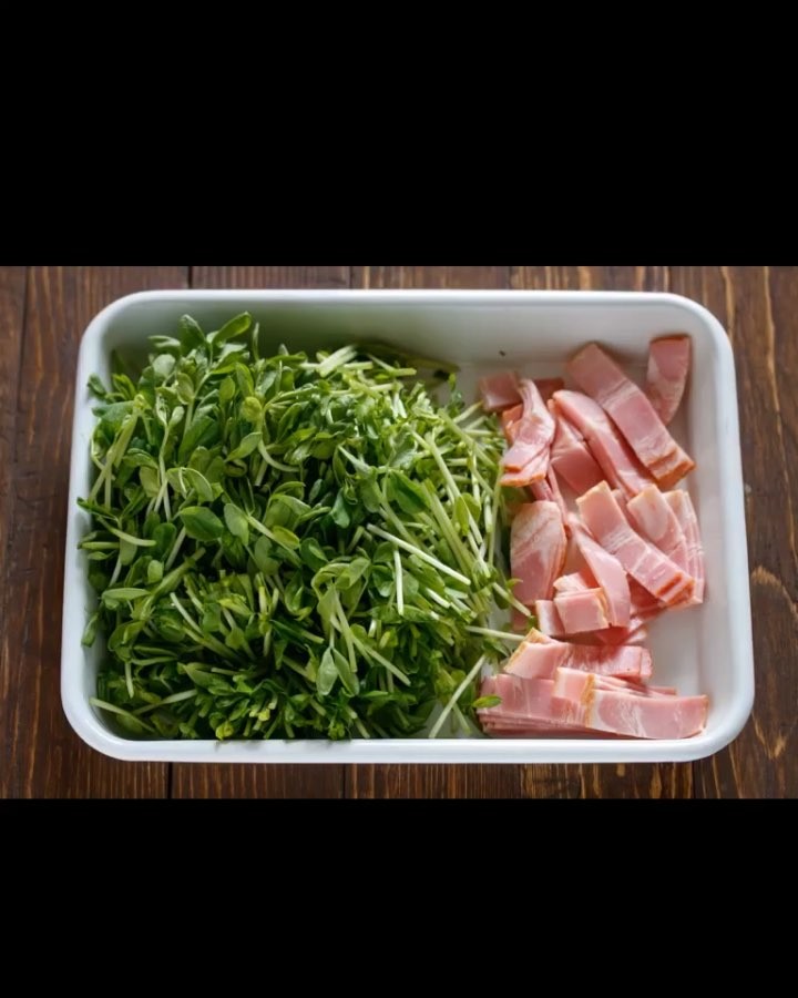 豆苗・ベーコン・卵と