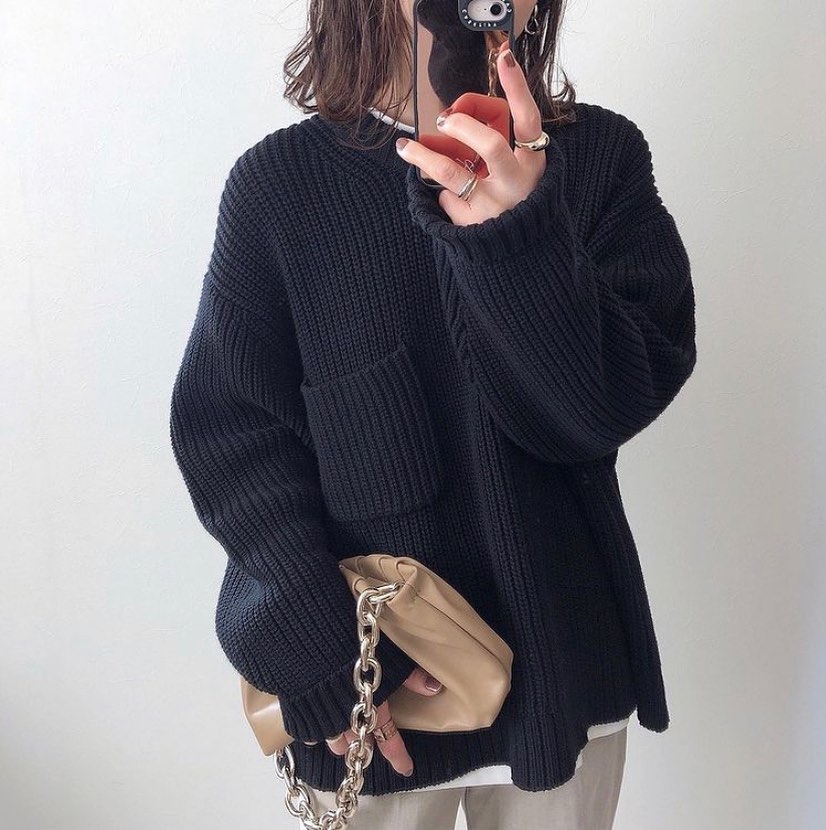 お洒落さん大注目の、ゆったりフォルムが魅力のメンズセーター✨ローゲージの素材感が、映えますね😘肩の落ち感も、袖のゆる感も、間違いなしのシルエットです👌長すぎない丈感だから、レイヤードしやすいのもGOODです👍