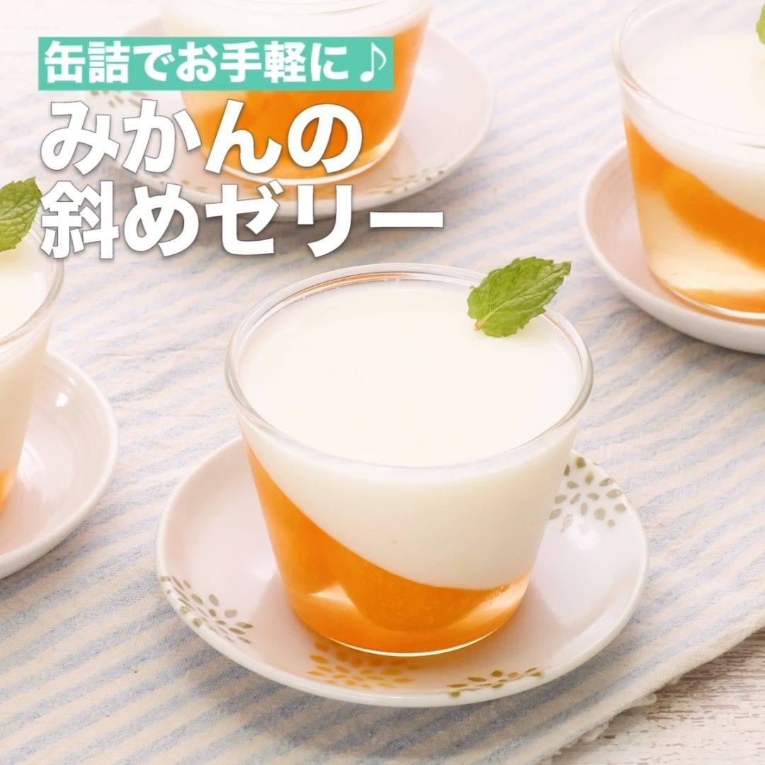 ⑥<缶詰でお手軽に♪みかんの斜めゼリー>