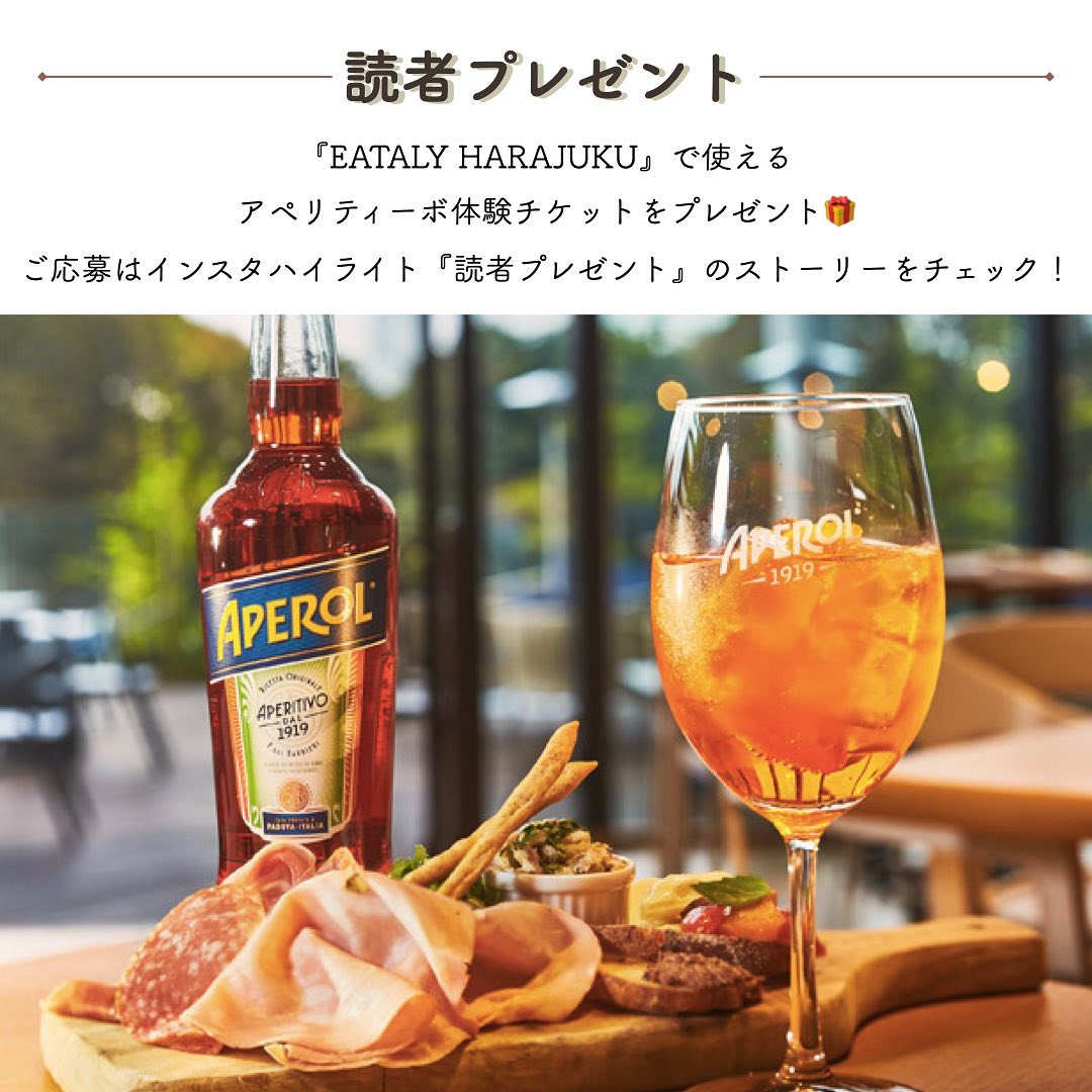 🎁読者プレゼント】「アペロール読者プレゼントアンケート」にお答えいただいた方の中から、抽選で30組60名様に2『EATALY HARAJUKU』のレストランエリアで使えるアペリティーボチケットをプレゼント!