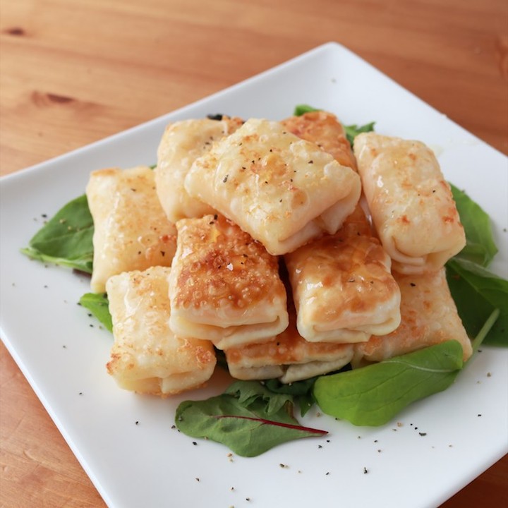 3種類のスライスチーズを餃子の皮で巻いた、簡単チーズおつまみです。チーズと相性ぴったりなはちみつをかけて、甘さとしょっぱさの絶妙なバランスです。さっと作れておつまみにもぴったりな一品です。ぜひ作ってみてください。
