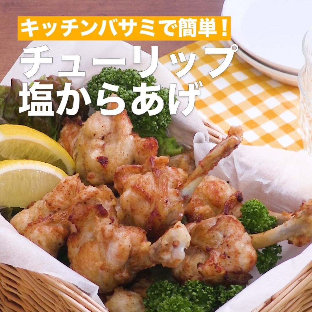手羽元をチューリップの形に見立て、食べやすくて見た目もかわいいからあげのご紹介です!難しそうに見えて包丁は使わず、キッチンバサミだけで仕上がります!覚えておくとホームパーティーにも役立つ一品です♪