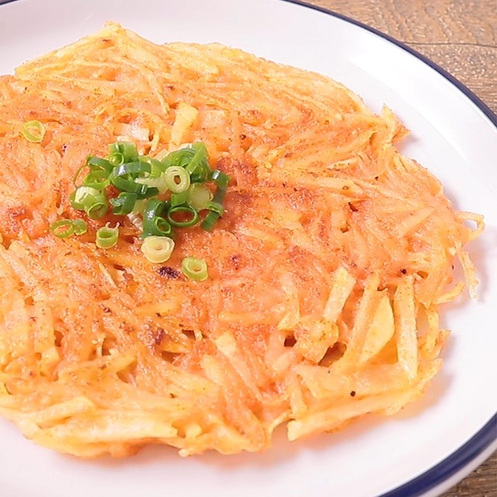 明太子味がおいしい、ボリュームたっぷりのじゃがいもガレットのご紹介です。明太子とチーズの組み合わせがとてもおいしい一品ですよ。今晩のおかずのあと一品にいかがでしょうか。この機会にぜひ作ってみてくださいね。
