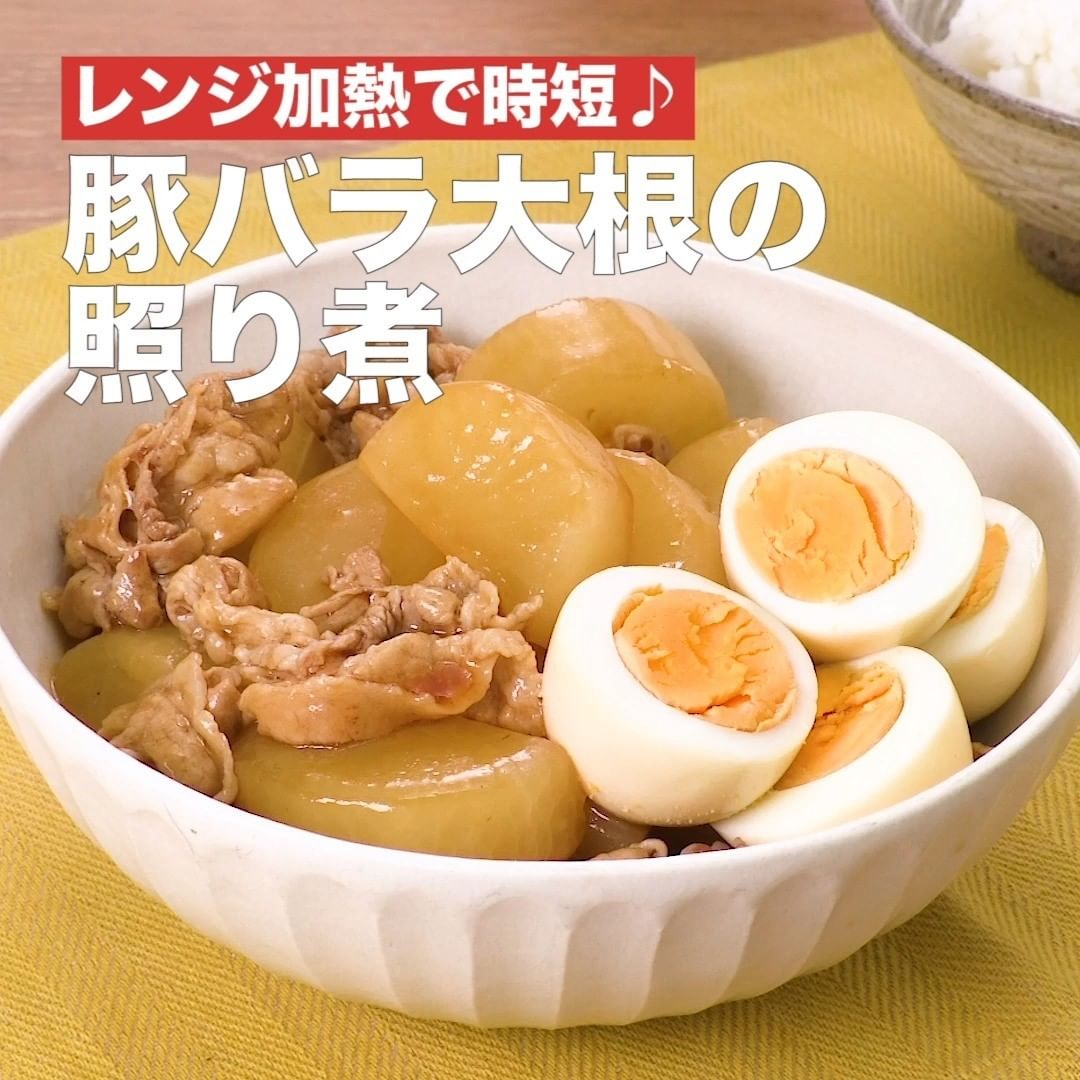 ⑧<レンジ加熱で時短♪豚バラ大根の照り煮>