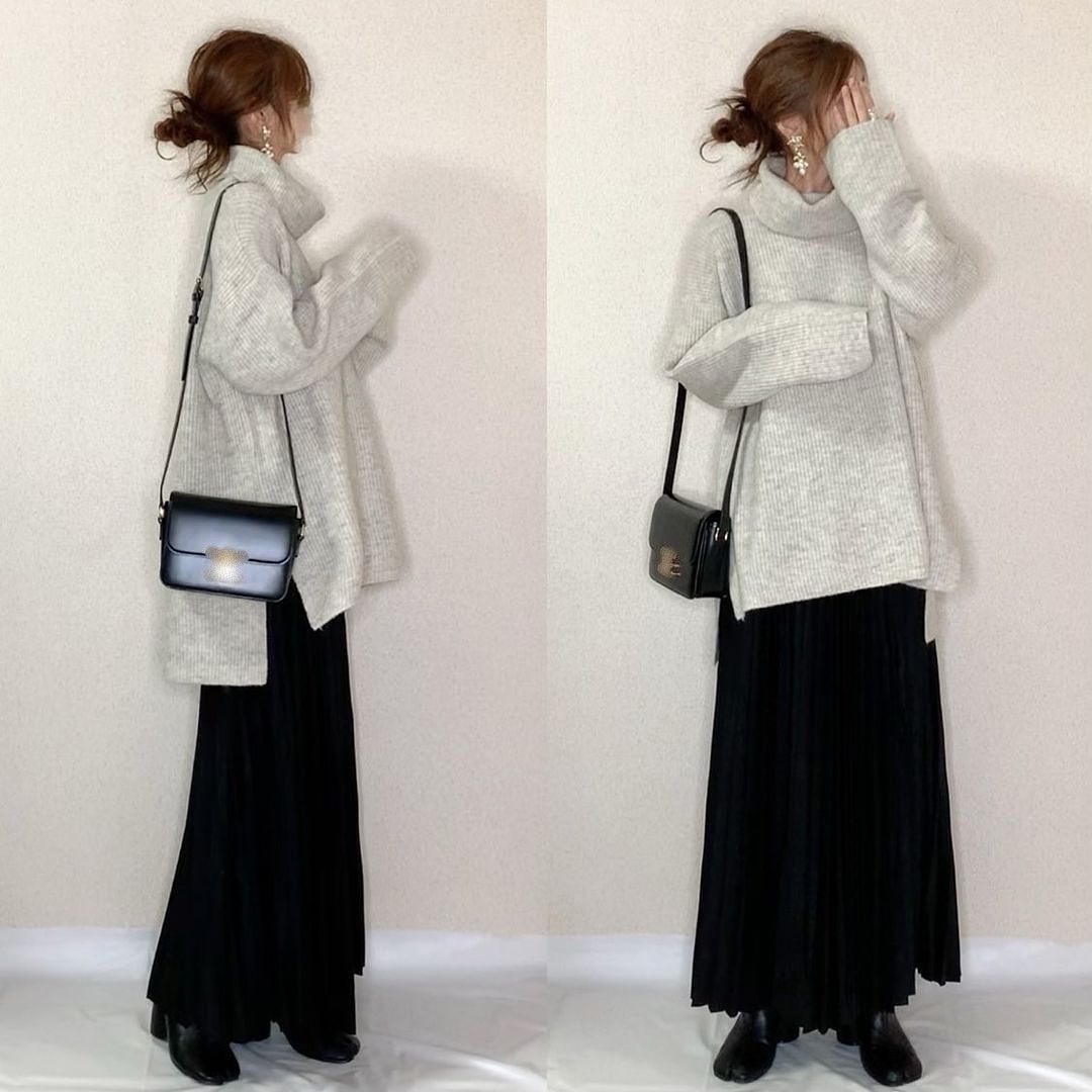 ボクシータートルネックセーターコーデをPick up!この緩さ加減が、可愛すぎる🥰ボクシー タイプのゆったりシルエットだから、ロングスカートにも合いますね👌サイドスリットが効いていてGOOD👍とっても素敵です✨暖かな素材感も嬉しいセーター🙌是非、チェックしてみてくださいね💁♀️💕
