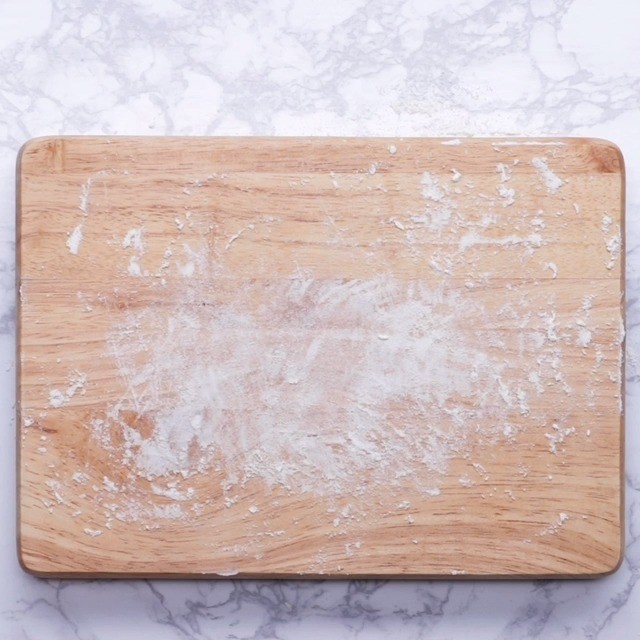 6.打ち粉をした台(ここではまな板シート)に生地を出し手で丸く形を整える。綿棒で2.5cm程度の厚みにする。