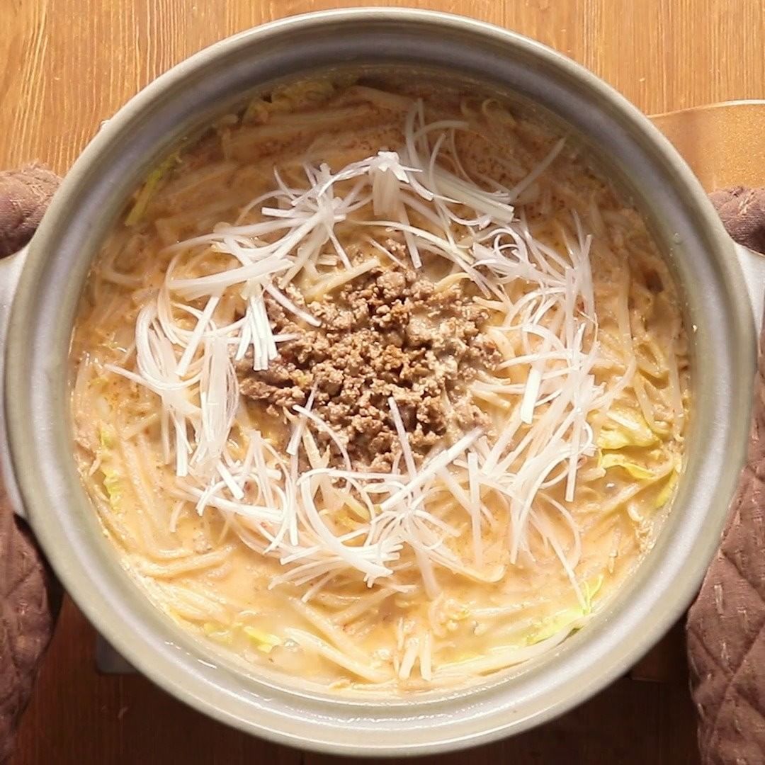 ①『節約 ごまドレでもやし豆乳担々鍋』 .