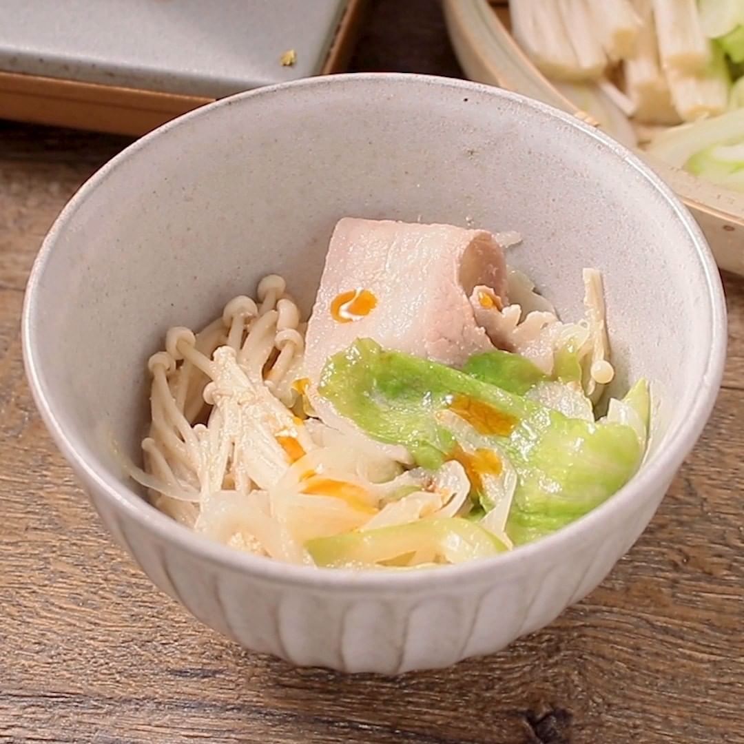 5. 3を入れて中火で加熱し、豚バラ肉と2をくぐらせて器に取ります。