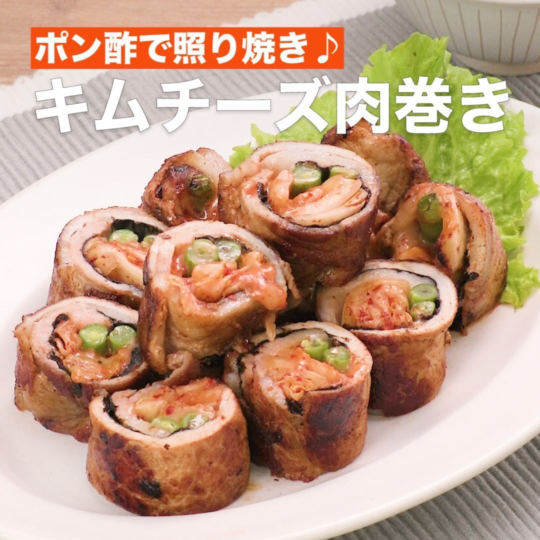 豚キムチを大きく肉巻きにした一品のご紹介です♪中にのりとチーズも入っておいしさ倍増!ごはんがとっても進み、おつまみにもおすすめです。チーズが濃厚な味わいの肉巻きをポン酢でさっぱりと仕上げました♪