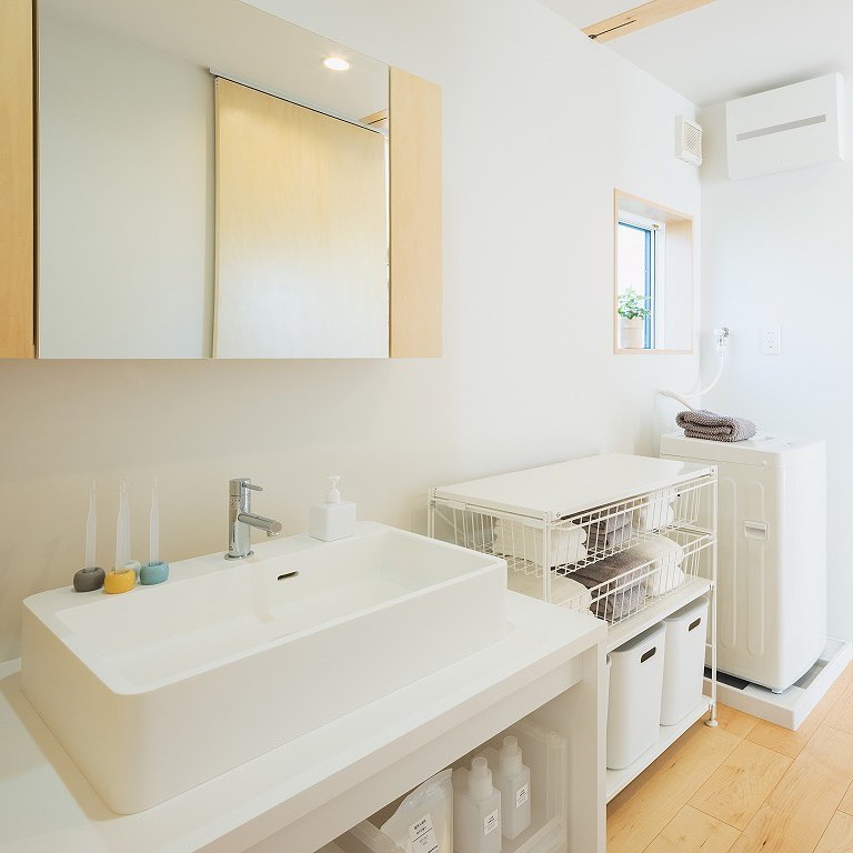 水まわりは機能的にまとめ、キッチン収納は無印良品の収納家具を使って効率的に使っていただけるようにしました。