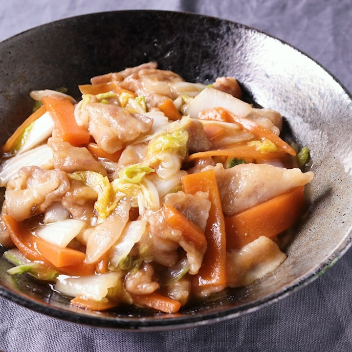 白菜と豚肉のうま煮のご紹介です。みずみずしい白菜とジューシーな豚バラ肉の組み合わせに、うまみのある味付けが相性抜群です。ごはんのおかずにも、お酒のおつまみにもおすすめですよ。ぜひ、試してみてくださいね! .