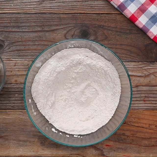 1. パイ生地を作る。大きめのボウルに薄力粉、シナモン、塩を入れて混ぜ合わせる。ショートニングを加え、ペイストリーブレンダーかナイフ二本を使って切るように混ぜ合わせる。ショートニングがグリンピース位の大きさになるまで続ける。