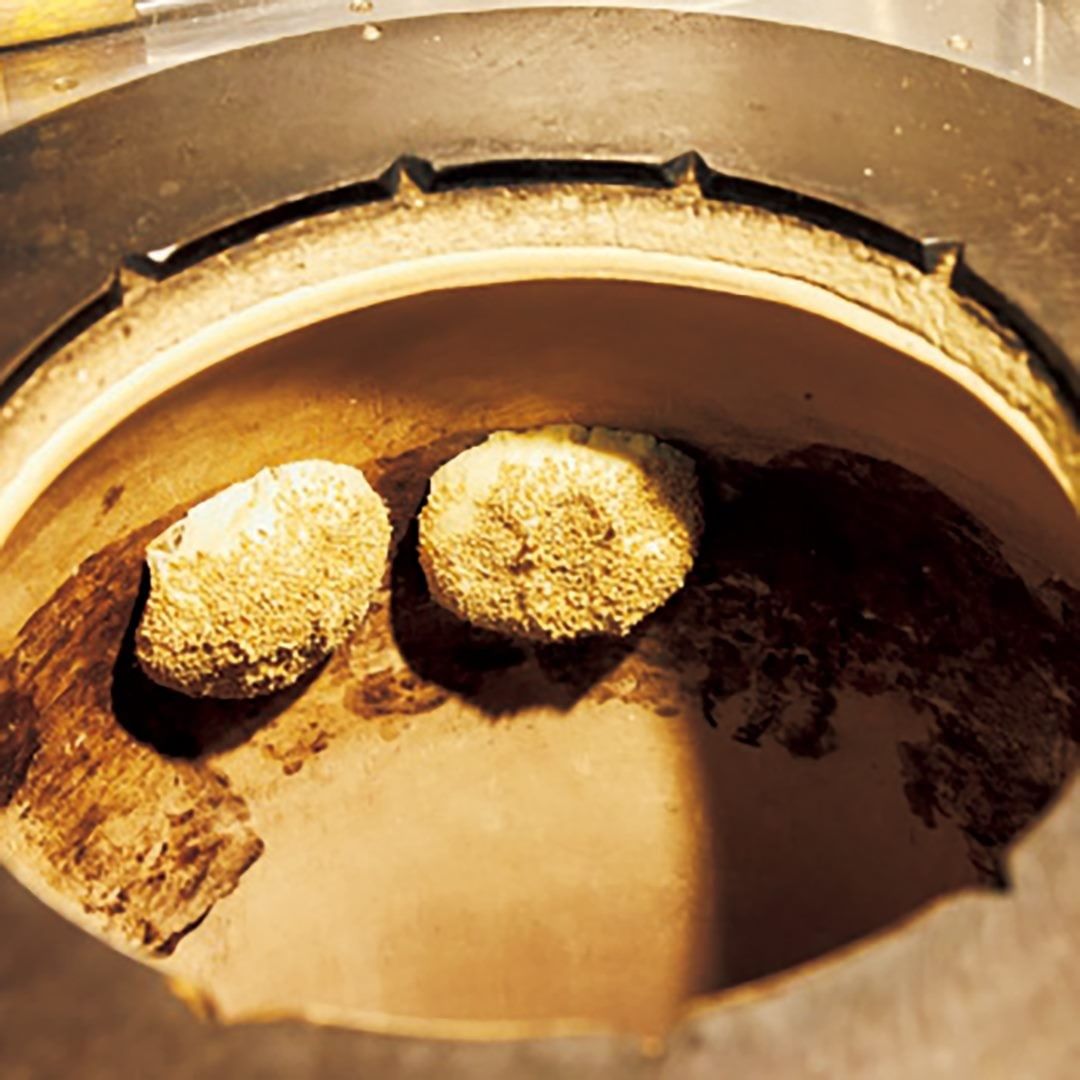 ③タンドール窯をつくる工房に特注した専用窯の内側に貼り付けて焼く。