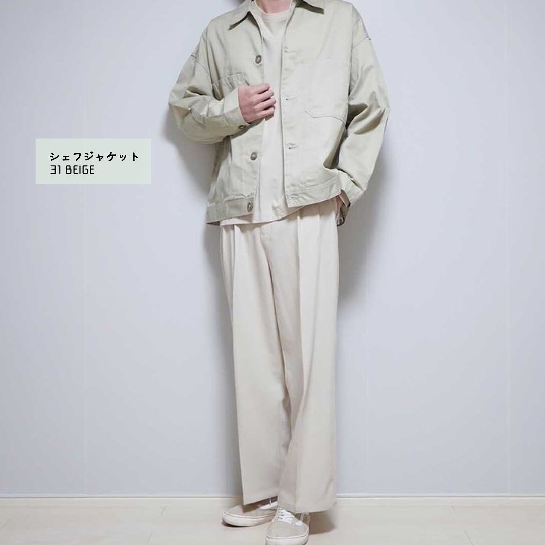 プラスワンで持っていたいアイテム🎉シェフジャケット👍ワークテイストながら、きれいに着こなせる優秀アウター😏使い勝手が良いから、季節を超えて使えるのも良いですね🙌是非、チェックしてみてくださいね💁♂️✨