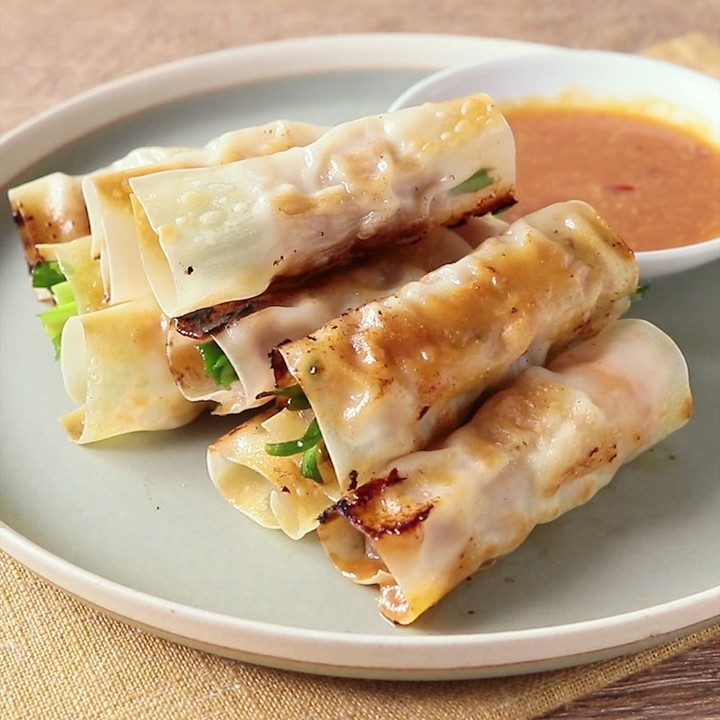 カリカリの皮でいただく豚キムチはいかがでしょうか。一口で食べやすいのでごはんのおかずにはもちろん、おつまみやお弁当の具材にもぴったりです。にら以外にも青ねぎやもやしなど他のお好みの野菜で代用していただけます。