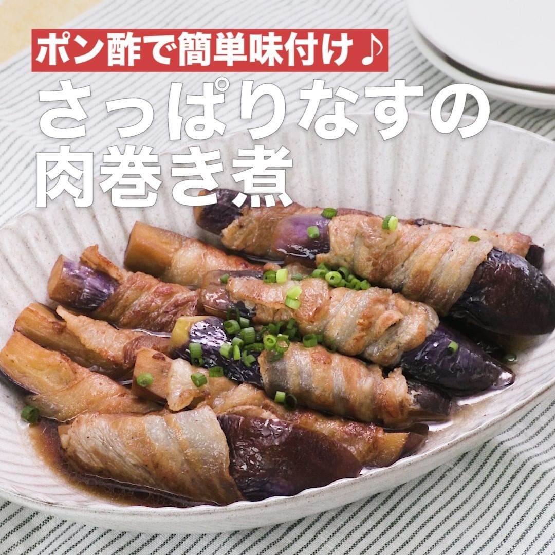 なすの肉巻きを酸味が効いた煮汁で煮込んでさっぱりいただける一品のご紹介です♪ポン酢であっさりながらも、食べ応えのある一品♪ラー油や一味唐辛子を加える大人なアレンジもおすすめです!