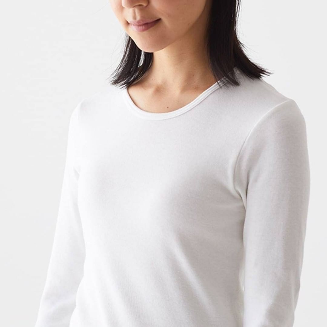 綿とウールで真冬もあったか クルーネック 長袖Tシャツ 婦人